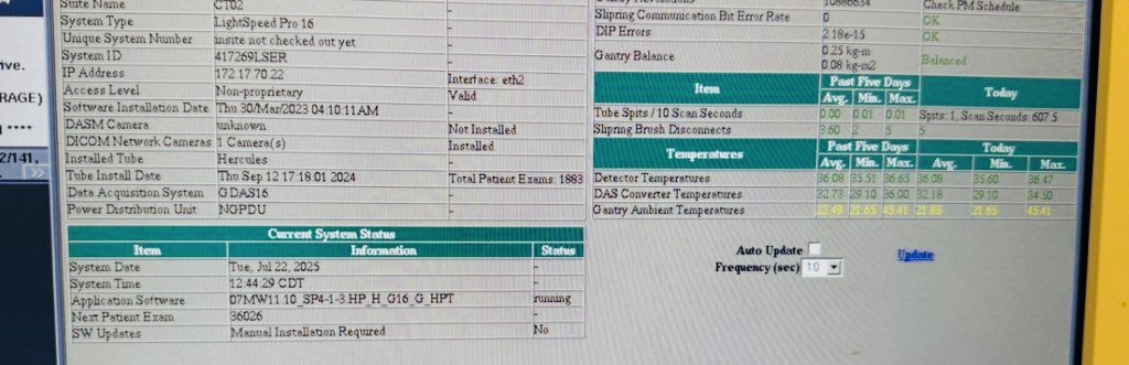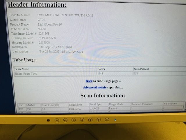 Zum Verkauf steht ein bewährtes CT-System des Typs GE LightSpeed 16 aus dem Jahr 2006. Das System wurde mit einer neuen Röntgenröhre (2024) ausgestattet und bietet damit eine attraktive Lösung für zuverlässige CT-Bildgebung bei gleichzeitig wirtschaftlichem Betrieb.